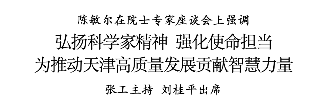 陈敏尔认真倾听,不时询问有关情况,同院士专家互动交流。他代表市委、市政府向新当选的两院院士表示祝贺,对大家长期以来为天津发展作出的重要贡献表示衷心感谢。他说,各位院士专家深学深用习近平总书记关于科技创新的重要论述,牢记“国之大者”,站在科技前沿,立足天津实际,提出的意见建议战略站位高,针对性、专业性、可操作性强,展现出强烈的责任担当。有关部门要认真研究,吸收到我市“十五五”规划纲要和今后的工作中。