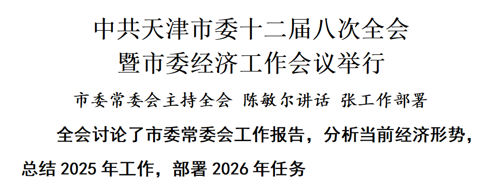 中国共产党天津市第十二届委员会第八次全体会议,于2025年12月29日召开。